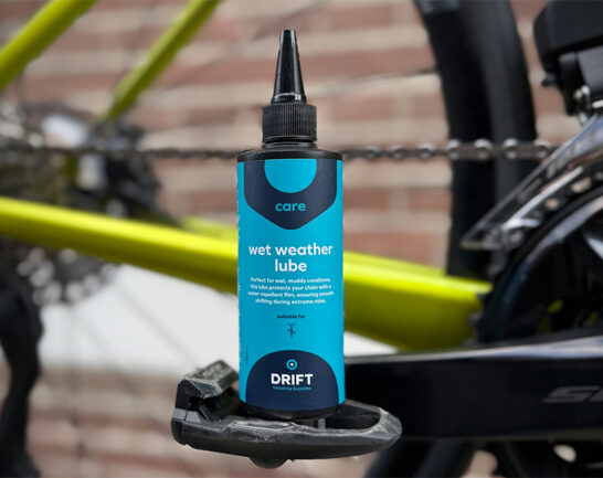 Racefietsketting wordt gesmeerd met een All Weather Wax smeermiddel.